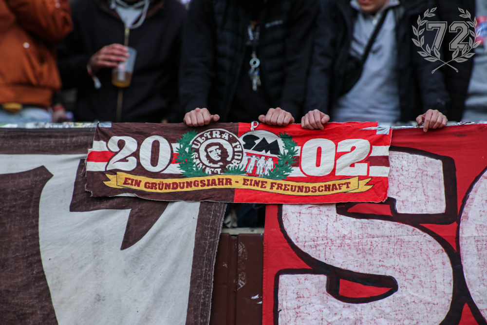 Der Spieltag nahm sein Ende in einem Park unweit des Stadions, in dem USP uns noch mit Getränken versorgte, ehe es heimwärts ging. Der ein oder andere blieb noch länger und machte gemeinsam mit unseren Freund*innen in deren Räumlichkeiten die Nacht zum Tag. Zum Abschluss bleibt nur ein riesiges Dankeschön nach Hamburg zu richten. Was ihr da wieder auf die Beine gestellt habt, war wirklich das absolute Maximum. Nicht nur am Spieltag, sondern das ganze Wochenende über habt ihr jeden von uns mit offenen Armen empfangen und eine extrem schöne Zeit beschert. Ein weiteres denkwürdiges Wochenende in der Freundschaft zwischen unseren beiden Gruppen. Wie schon mehrmals angeschnitten, stand der Tag aber nicht nur unter einem guten Stern, sondern war auch geprägt von der Erinnerung an diejenigen, die nicht dabei sein konnten. Neben Kiste dachten wir heute besonders an unser verstorbenes Mitglied Kalle, dessen Konterfei zum Ende des Spiels unsere Zaunfahne zierte. Ehre allen verstorbenen Ultras!