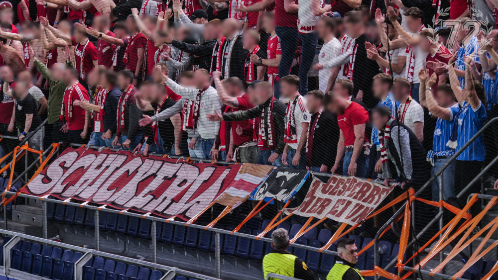 Das wars für den Abend. Mit den letzten Zeilen geht ein Dank an unsere Freunde und Freundinnen aus Bochum, Jena, Sankt Pauli, Empoli und San Benedetto für die Unterstützung an diesem Abend. Die wirklich letzten Worte gehen an diejenigen, die bei solchen Spiele aufgrund von Stadionverboten nicht bei uns sein können: mit dem Halbfinale wurde euch ein weiteres Spiel geschenkt – hoffen wir, dass Ende Mai nochmal eins dazu kommt und wir gemeinsam in Budapest in der Kurve stehen. Gegen alle Stadionverbote!